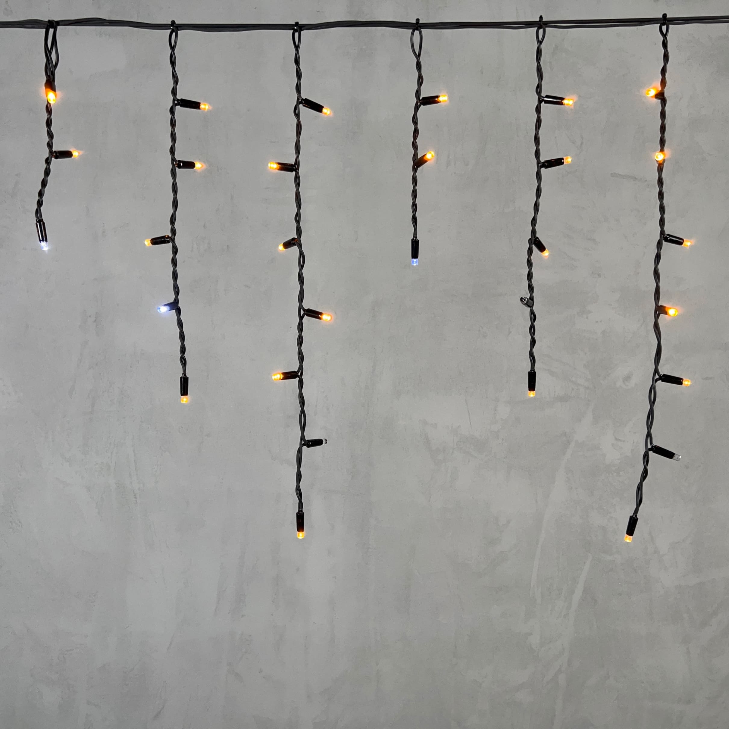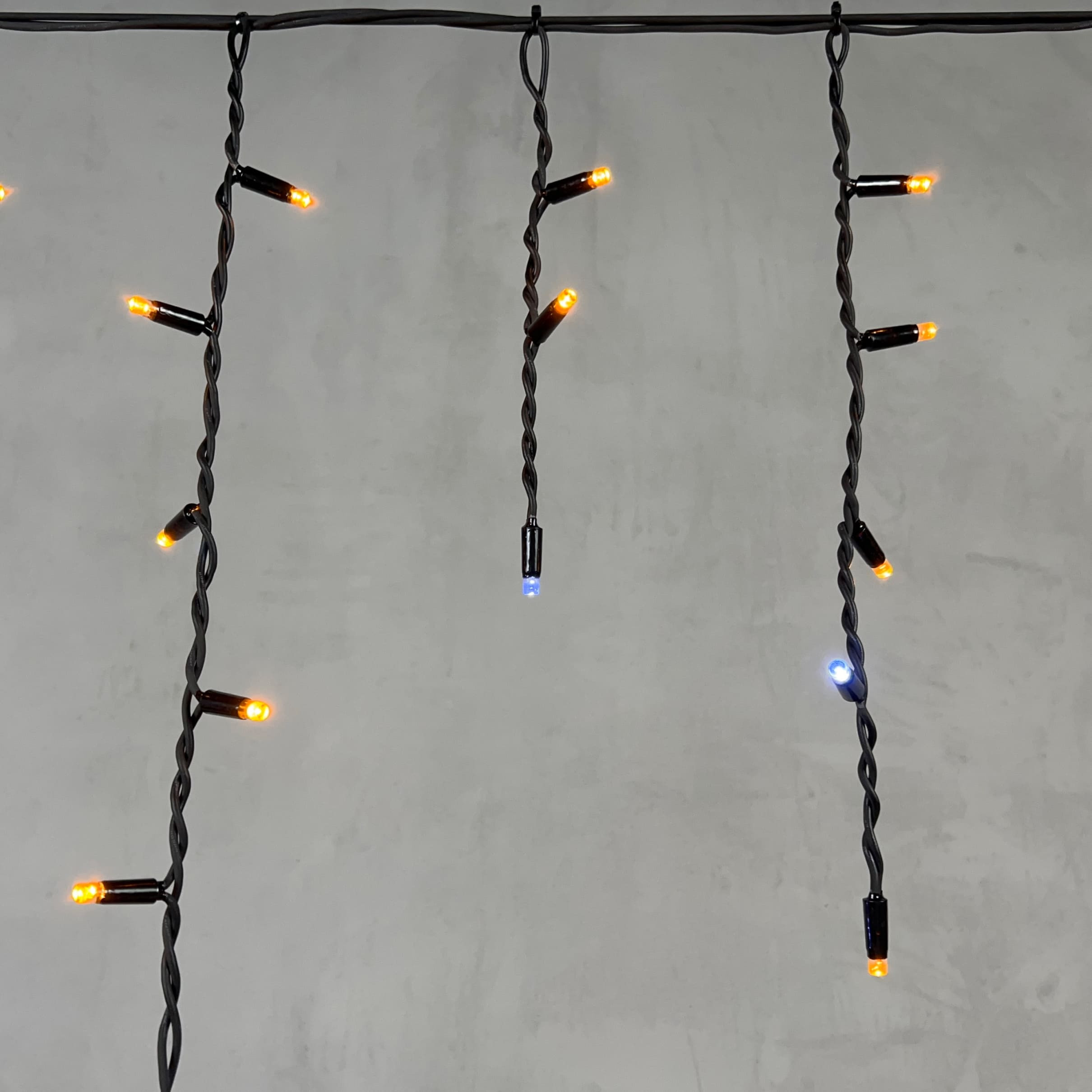Гирлянда Бахрома 3,1 x 0,5 м Жёлтая с Мерцанием Белого Диода 220В, 120 LED, Провод Черный Каучук, IP65
