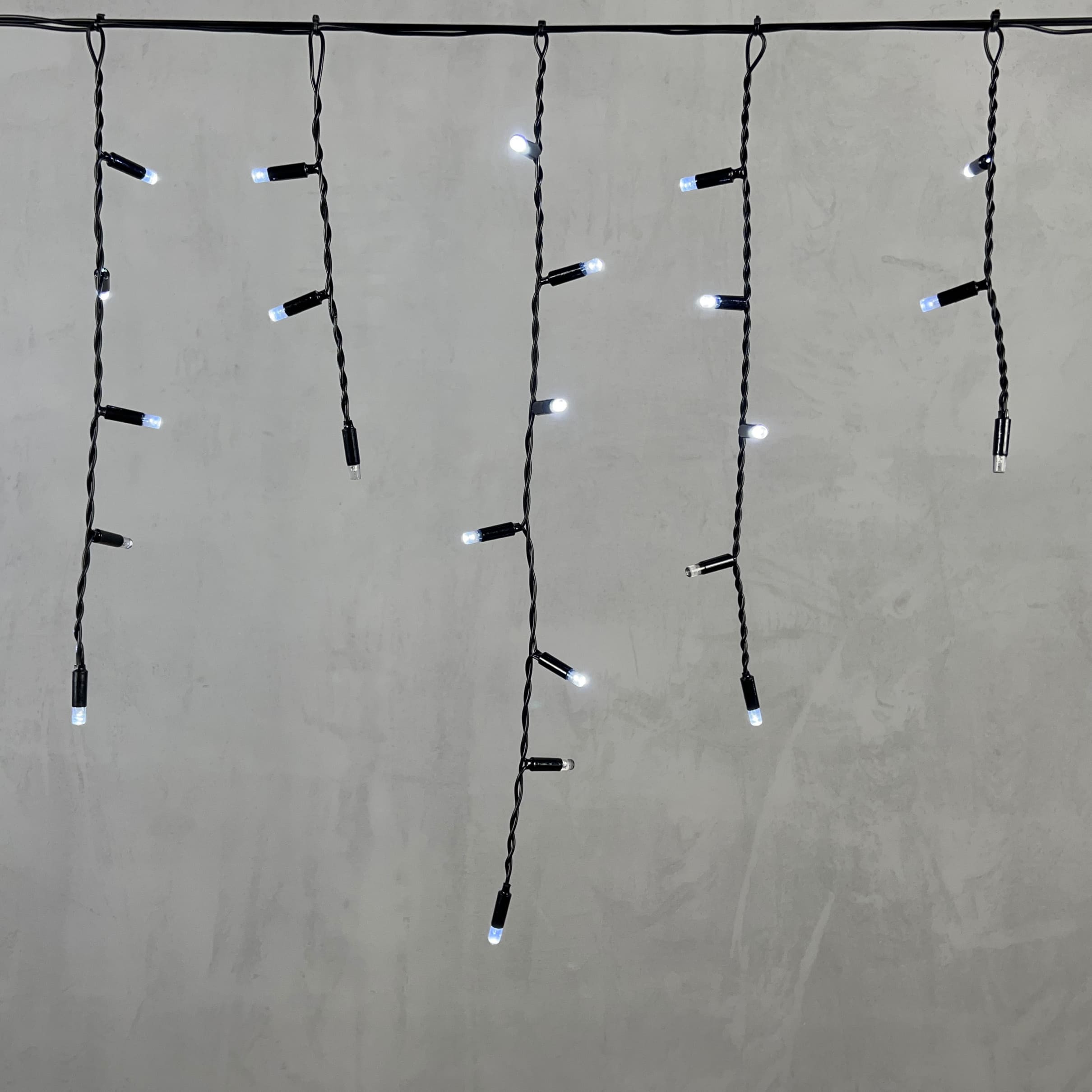 Гирлянда Бахрома с Колпачком 3,1 x 0,5 м Белая с Мерцанием Белого Диода 220В, 120 LED, Провод Черный ПВХ, IP65