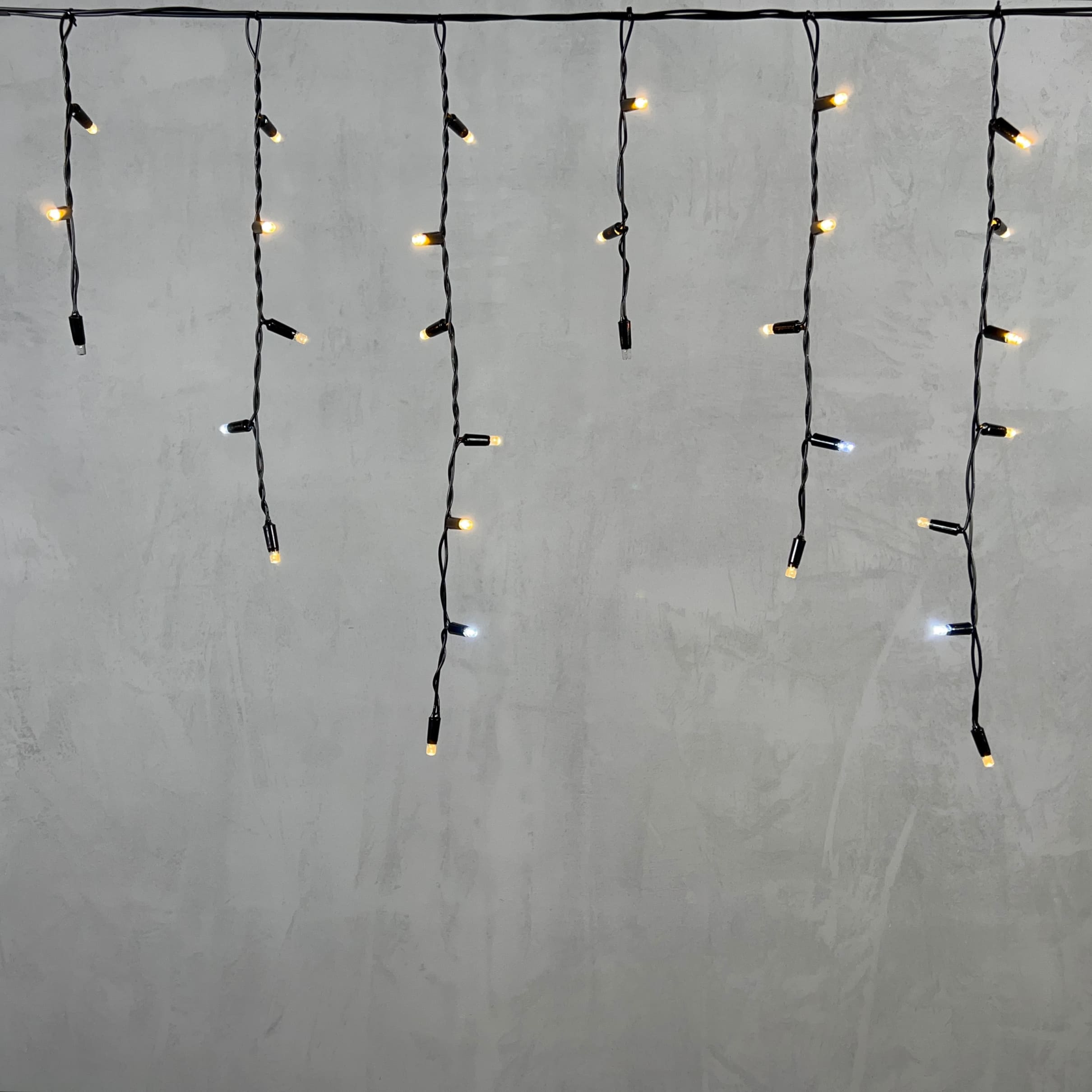 Гирлянда Бахрома с Колпачком 3,1 x 0,5 м Тепло-Белая с Мерцанием Белого Диода 220В, 120 LED, Провод Черный ПВХ, IP65