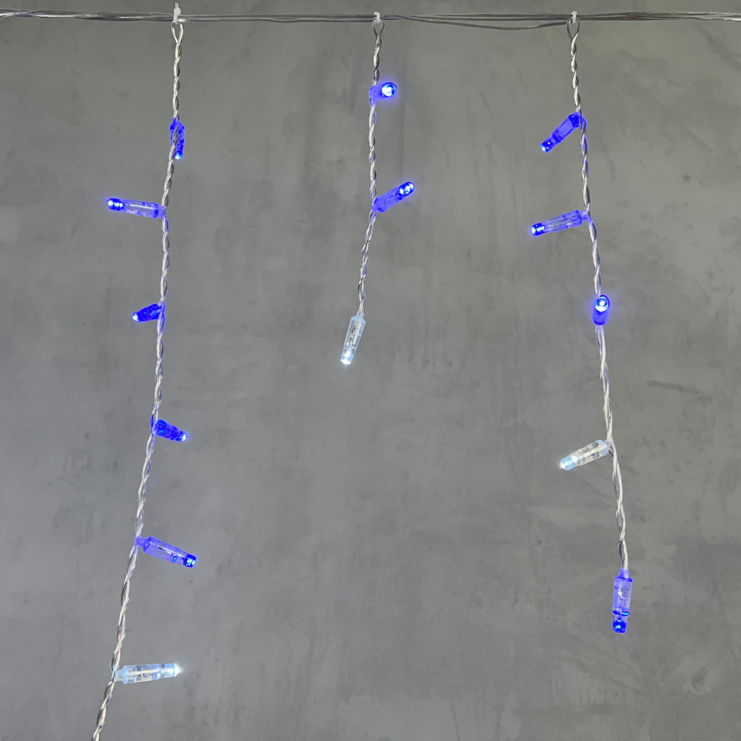 Гирлянда Бахрома с Колпачком 4,9 x 0,5 м Синяя с Мерцанием Белого Диода 220В, 195 LED, Провод Прозрачный ПВХ, IP65